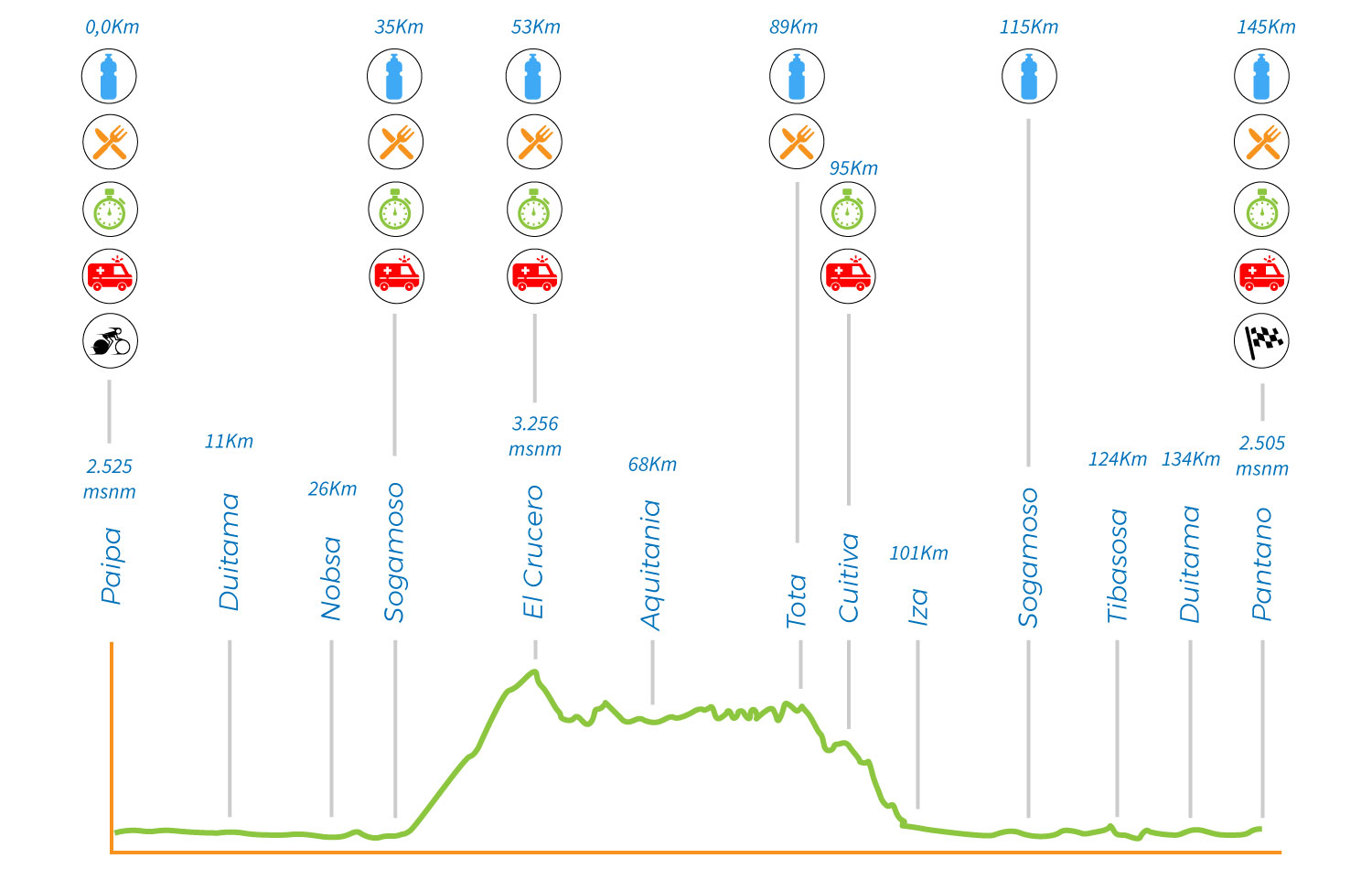 Equipos: Punto de salida, Sogamoso, El Crucero, Tota, Pantano de Vargas